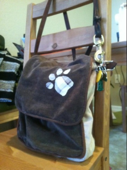 As part of my grieving process, I upcycled her old dog bed, leash, and collar into a purse so she could still, in a sense, go for walks with me.”